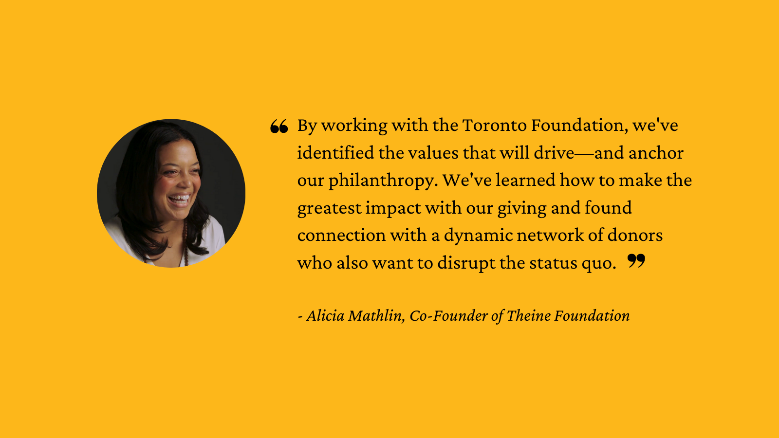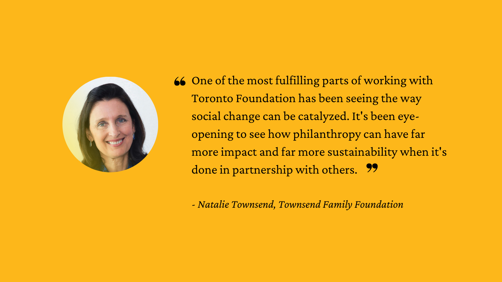 Toronto Foundation is a community of philanthropists. While everyone has different experiences, passions, and goals, we all call Toronto home and desire to maximize the impact of our personal philanthropy to create a city where everyone has equal opportunity to thrive.